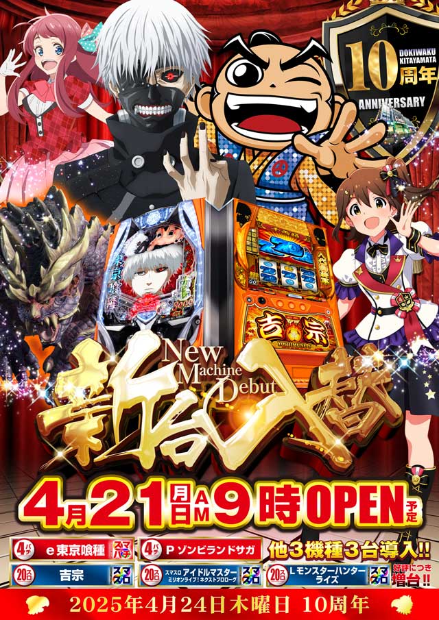 【4月21日新台入替】東京喰種や吉宗など話題機種登場🌈
