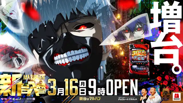 3月16日新台入替(予定)暴凶星、L喰種増台!9時オープン!
