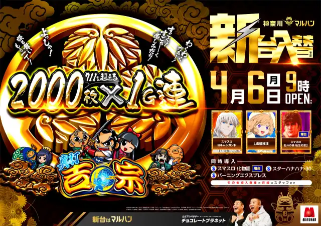 4月6日新台入替(予定)L真打吉宗導入!暴凶星増台!