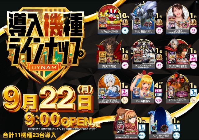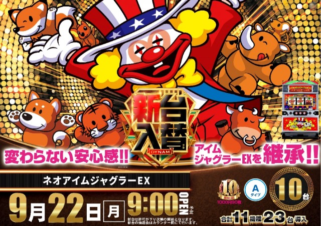 明日22日(月)ネオアイムジャグラーEXなど全11機種導入
