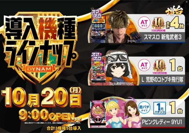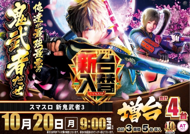 明日20日(月)スマスロ 新鬼武者3増台!全3機種導入