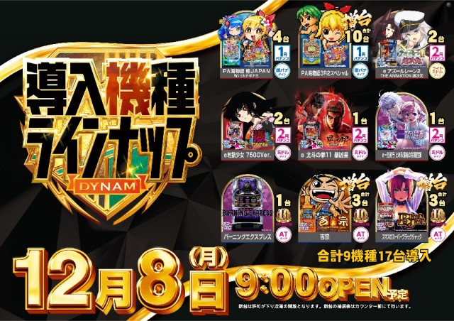 明日8日(月)海物語極ジャパンwithナギナミほか全9機種