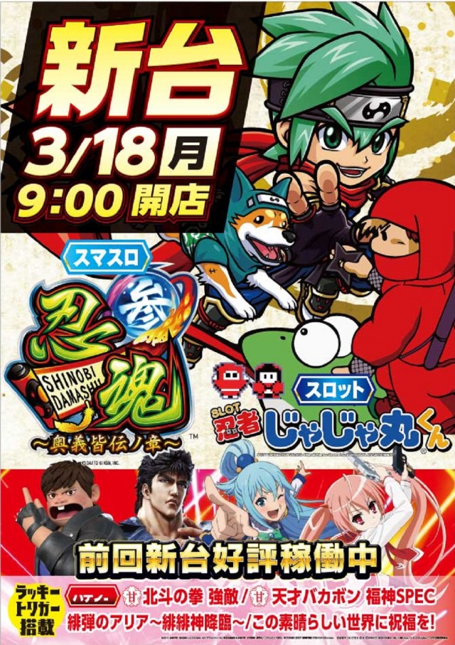 明日新台入替初日!スロットに☆L忍魂・Sじゃじゃ丸☆登場!!