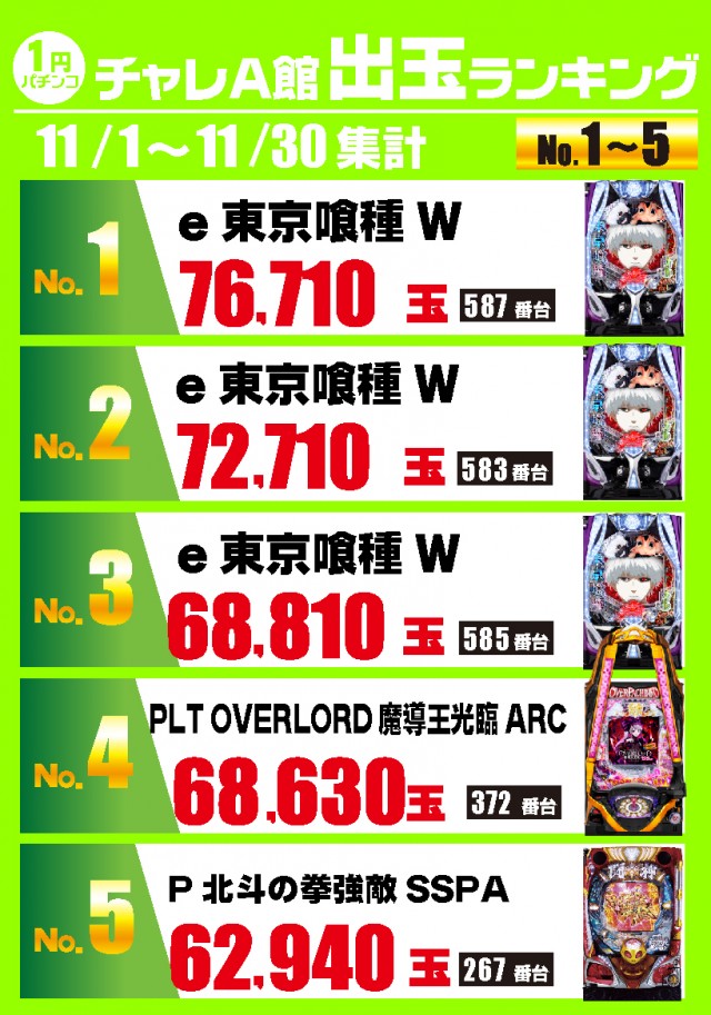 1パチ:361台 0.5パチ:31台 0.2パチ:40台 |