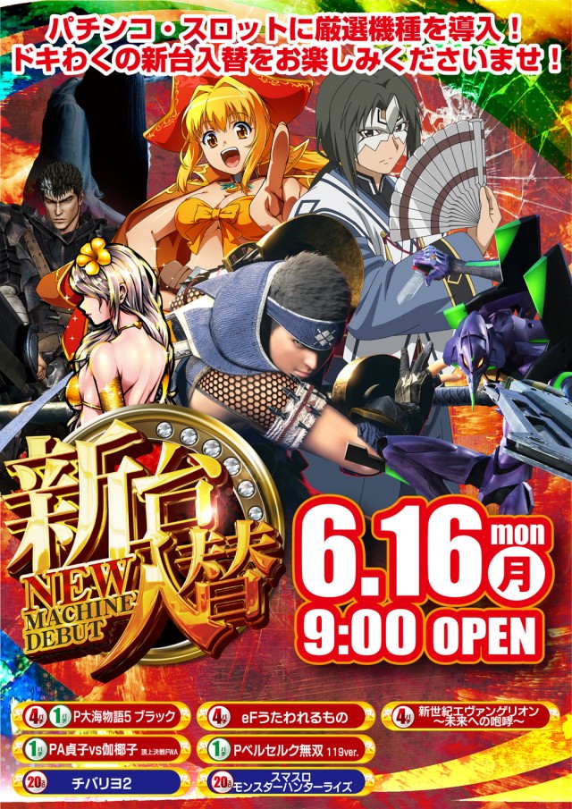 7.7(月)新台入替!パチンコ・スロットに話題の機種を導入!