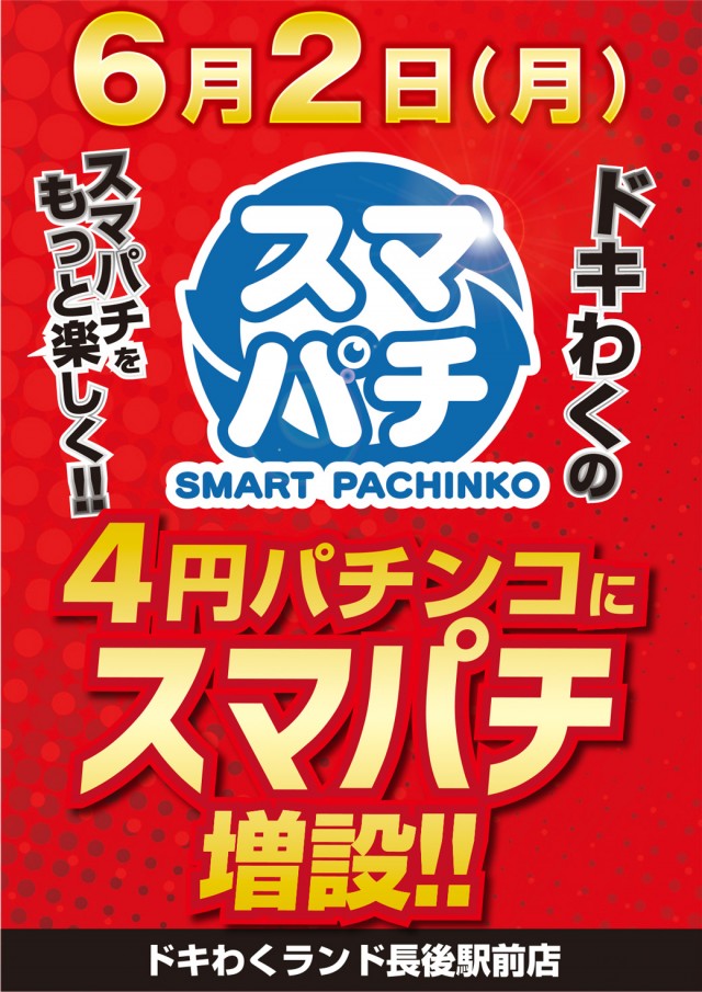 6.2(月)新台入替!4円パチンコスマパチ増設!!