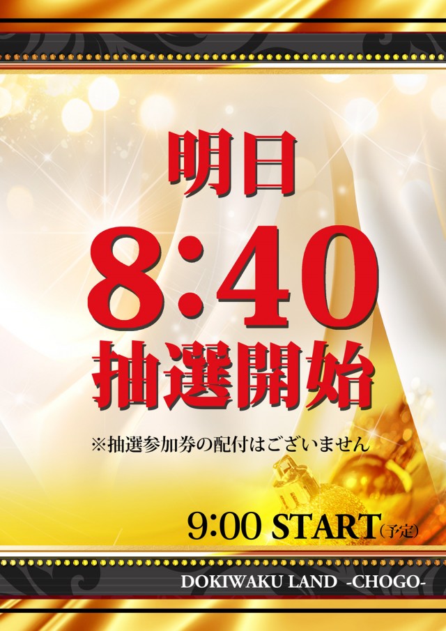 8:50より抽選を開始いたします。 |