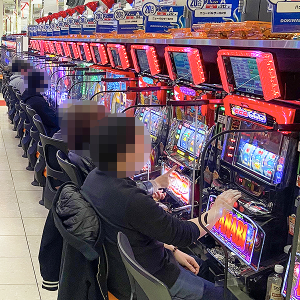 「押忍!番長3」や「SLOTバジリスク~甲賀忍法帖~絆2」では、機種の魅力を堪能するプレイヤーを確認。シマ中に明るい雰囲気が広がっていた。