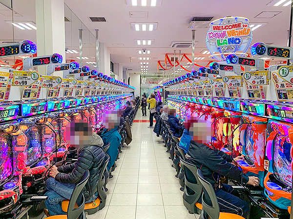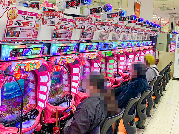 20円パチスロに目を向けると、「押忍!番長3」や「吉宗3」などが微笑ましいムードに包まれており、遊技中に見せるプレイヤーの嬉しそうな表情が印象に残っている。