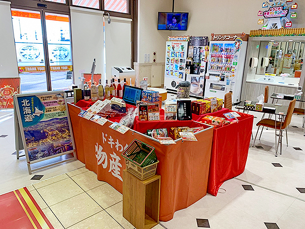 取材日の景品コーナーでは北海道物産展が開催されており、物珍しさも手伝ってプレイヤーたちから注目を集めていた。