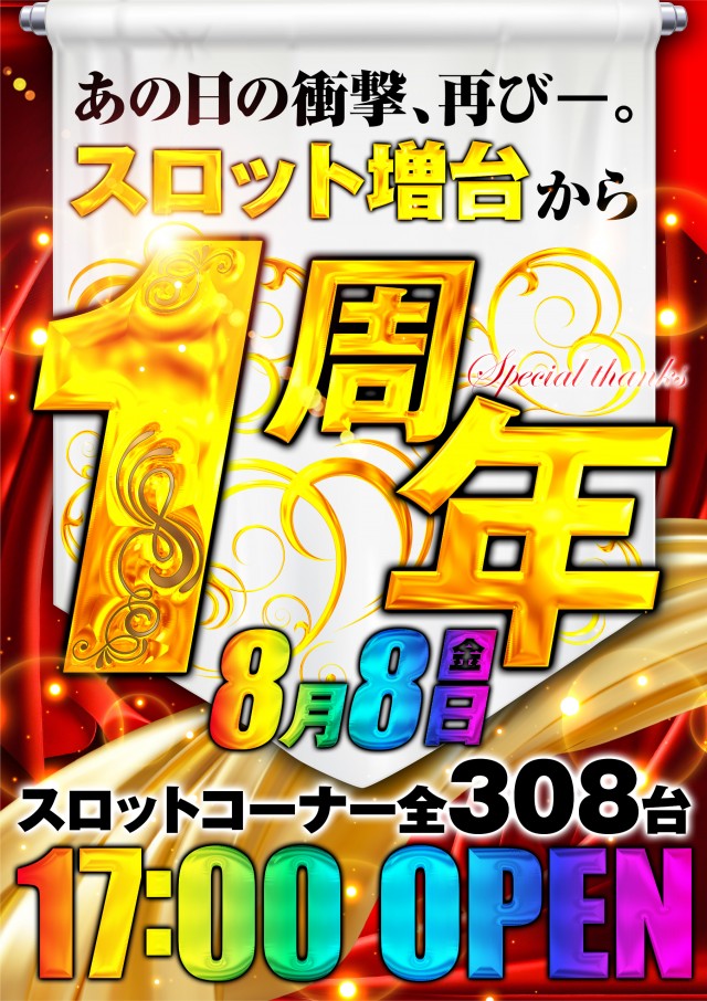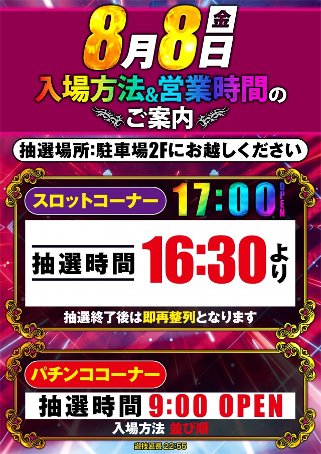 8月8日🎈パチンコ【9時開店】🌈スロット【🔥17時開店🔥】🌈