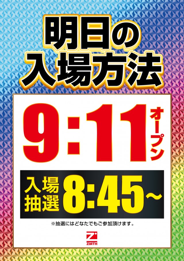 9:11OPEN 8:45抽選開始