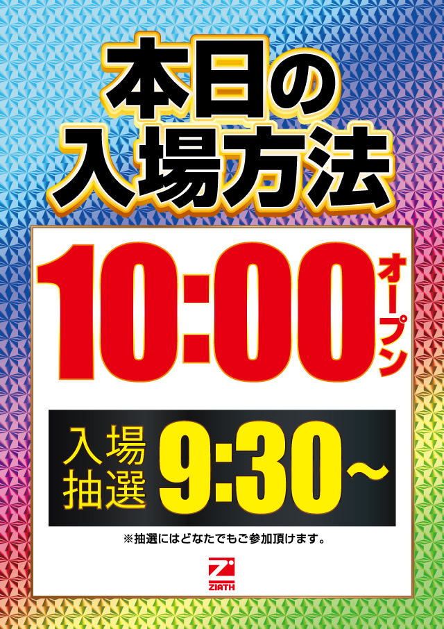 抽選時間は変更になる場合がございます 当店LINE,又は掲示物をご確認下さい |
