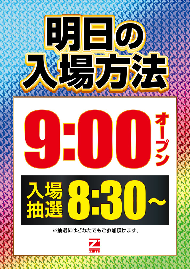 🌈🌈リフレッシュオープン最終日!8:30~入場抽選開始🌈🌈