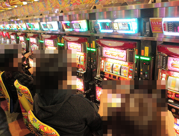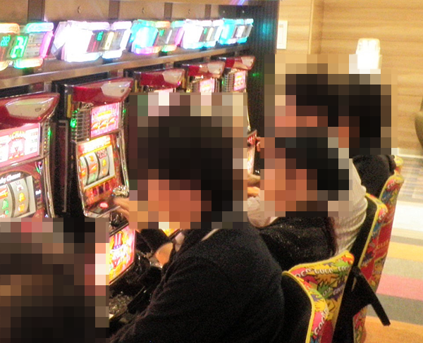 随所に華やかな装飾やポップがみられるパチスロコーナーにおいて、たくさんのプレイヤーが活躍していた。