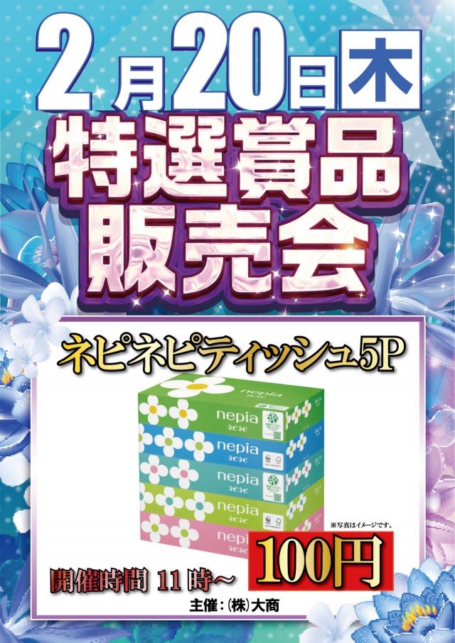 本日2月20日 ネピア販売会!開催時間:11時~
