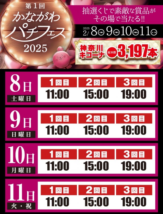 明日2月11日 パチフェス最終日!17時~たまご販売会も開催