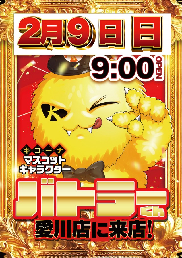 明日2月9日 パチフェス開催中!バトラー来店!店長朝から出勤