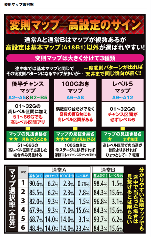 高設定は天国モードに移行しやすいなど、モード移行率にも設定ごとに異なる特徴がある。