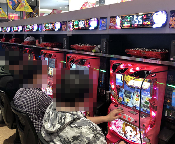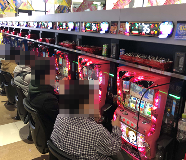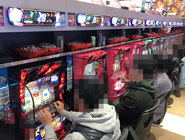 端から端まで、「押忍!番長3」の全台が明るい雰囲気に包まれていたことを覚えている。遊技のおもしろさを実感しているといった様子でプレイヤーはレバーを叩いていた。