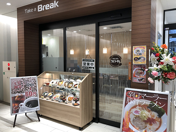ボリュームのある食べ物が楽しめる食事処も併設。コーヒーも置かれているなど、幅広いラインナップのメニューに魅力を感じた。