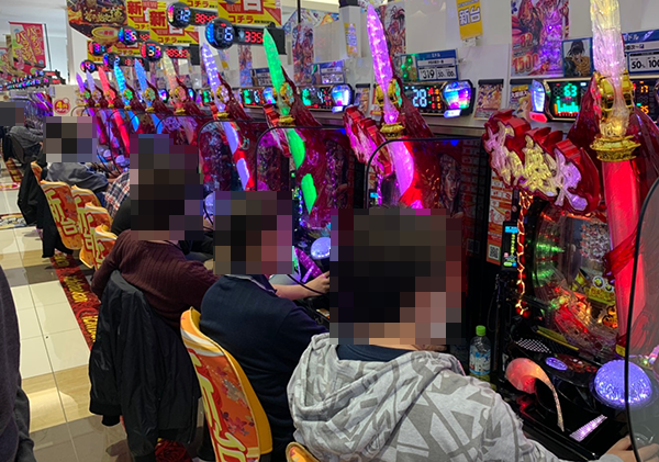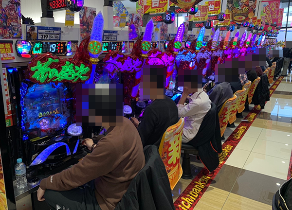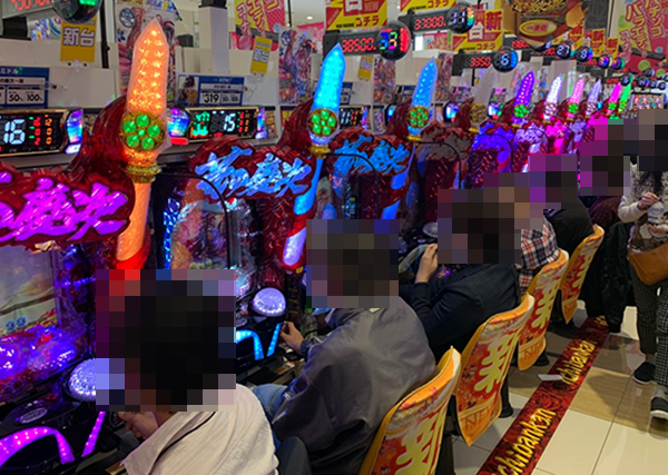 新台から長く愛されているシリーズ機まで、さまざまな機種が支持されていたパチンココーナー。パフォーマンスを披露しているプレイヤーが多く、楽しげな光景が広がっていた。