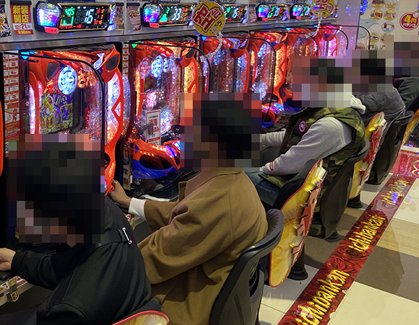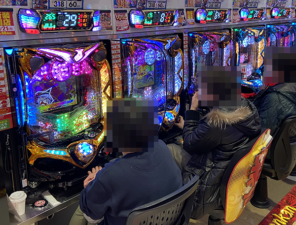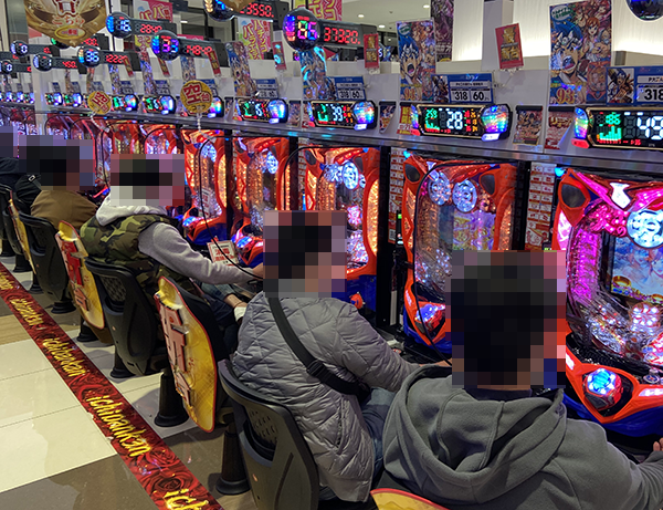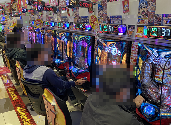 夕方頃にパチンコのシマをまわっていくと、さまざまな機種でプレイヤーが活躍をしていた。