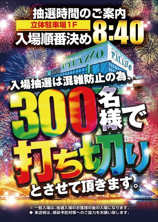 抽選開始時間 8:40 【抽選場所:1F 駐車場】 |