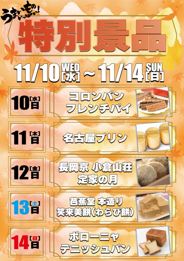 11月10日~14日【厳選特別景品入荷】♪売切れ御免!