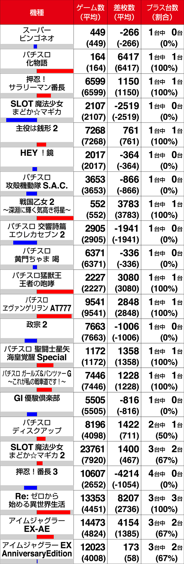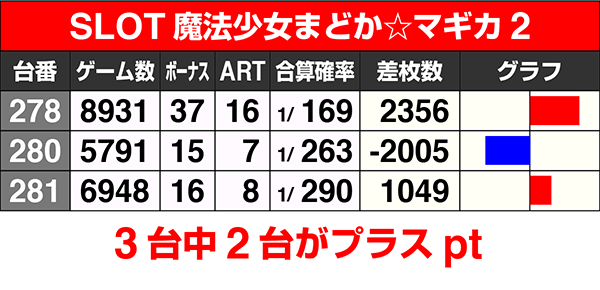 『SLOT魔法少女まどか☆マギカ2』も3台中2台がプラスを記録した。