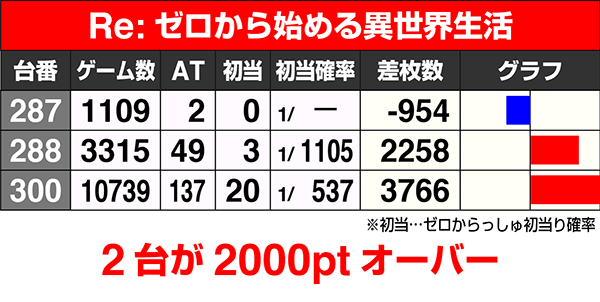 3台中2台がプラスの『Re:ゼロから始める異世界生活』は、2台が違った伸びかたで2000ptを突破した印象だ。
