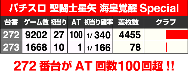 『パチスロ 聖闘士星矢 海皇覚醒Special』と『パチスロディスクアップ』は2台がともにプラス。