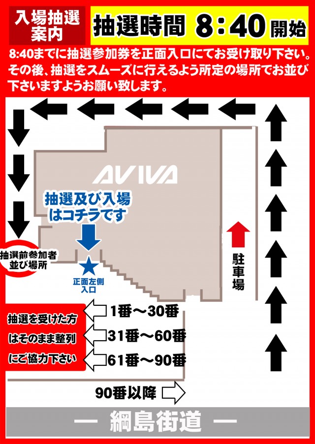 抽選場所:店舗正面入口前 抽選時間 通常日➡8:40抽選開始 1日・11日・21日➡8:30抽選開始 |