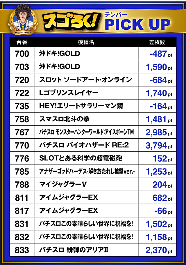 「スロット ソードアート・オンライン」と「HEY!エリートサラリーマン鏡」にも、優秀台の兆しが感じられる台があったぞ。