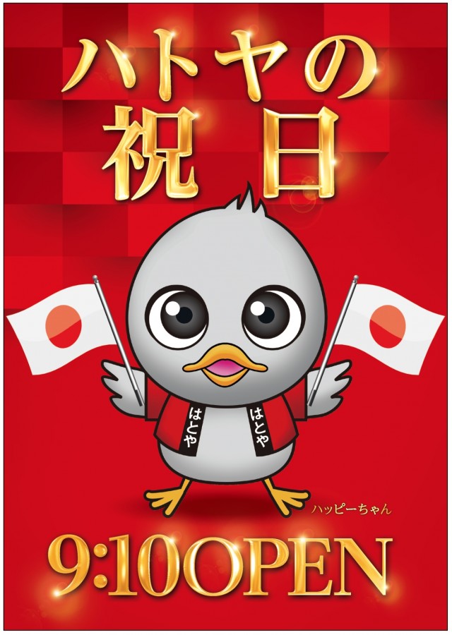 祝日もハトヤへGOGO♪※9:00頃~並び順入場です♪