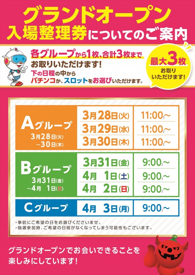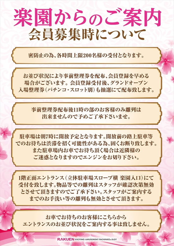 通常は8:30までにお並び頂いたお客様で2階立体駐車場にてパチンコ・スロット合同での抽選 |