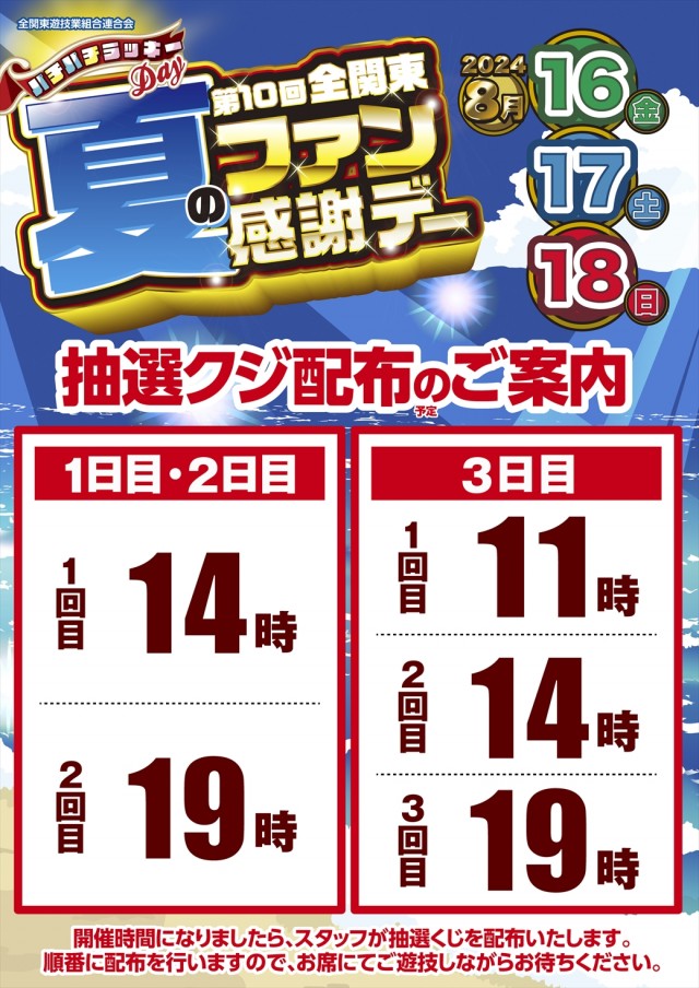 通常は8:30までにお並び頂いたお客様で2階立体駐車場にてパチンコ・スロット合同での抽選 |