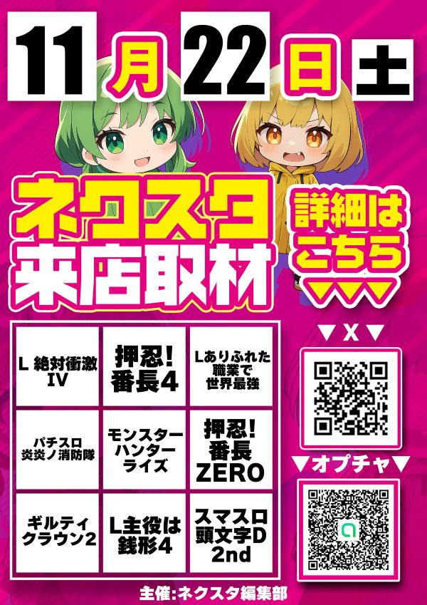明日は【共闘】【ネクスタ】のダブル来店取材!8:30抽選!