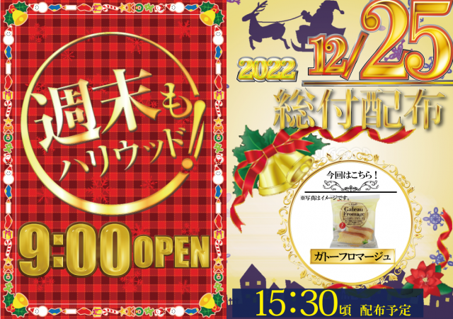 12/21(水)! 全館9時オープン!