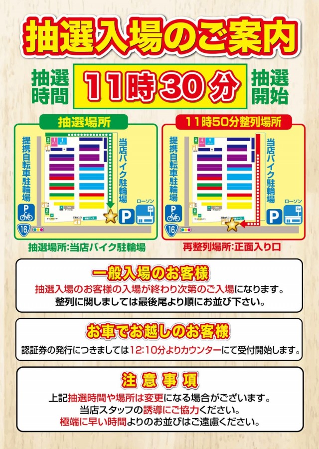 本日抽選11時30分より開始❗Days本気の12時OPEN😎