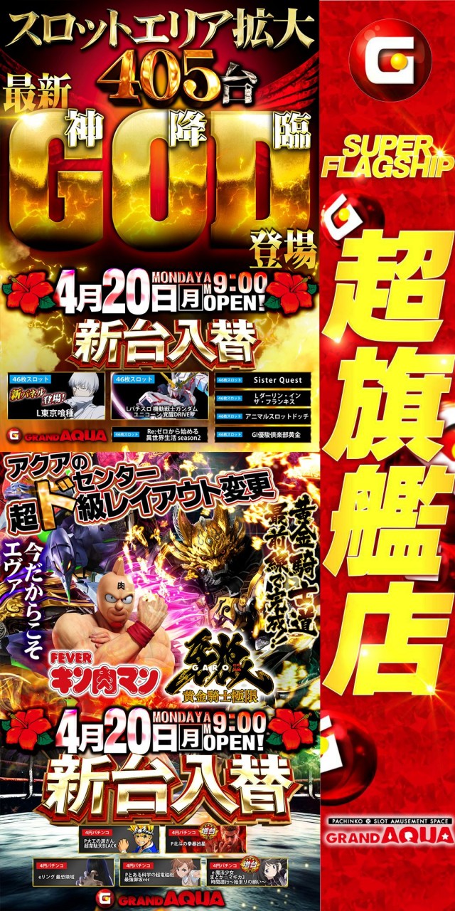 ⒼグランドアクアⒼスロット超増台405台へ!!