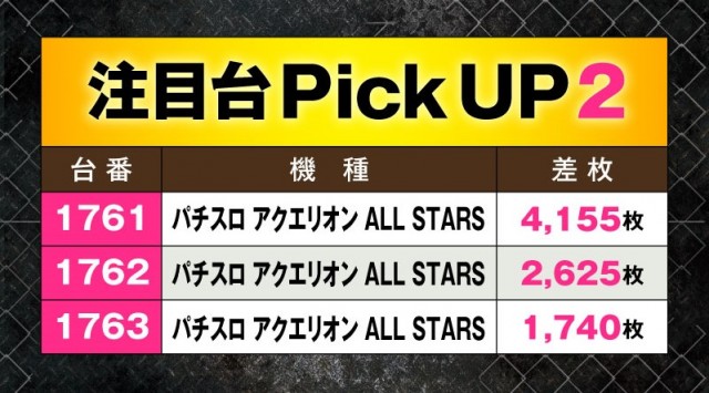 『パチスロ アクエリオン ALL STARS』は3台並びで圧巻のパフォーマンスを披露。平均2,840枚とプレイヤーにとって大満足な結果となっている。