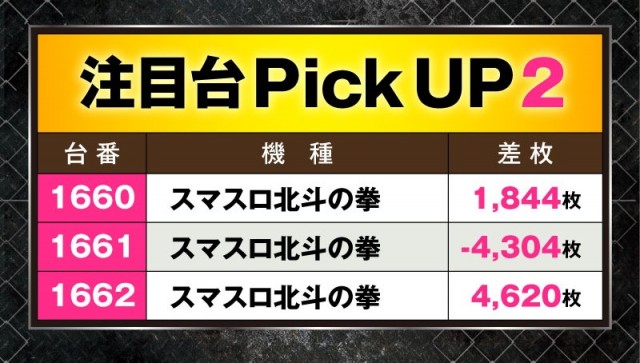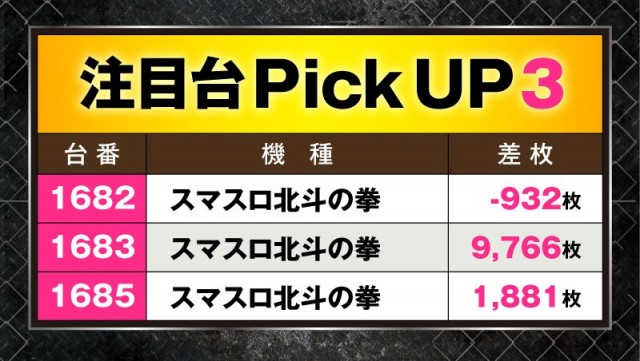 『スマスロ北斗の拳』では2か所で3台並びを確認。どちらもマイナスとなった台はあるものの平均差枚はプラスとなっている。なかには9,766枚と万枚一歩手前の大活躍も見られ、大いに活気が感じられた。
