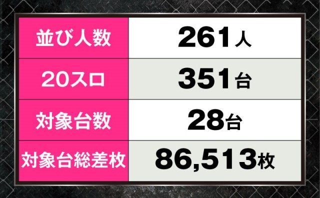 並びに関しては画像を見ての通り、そこかしこに好調台があふれていて、多くのプレイヤーが充実した時間を過ごせていたように思う。