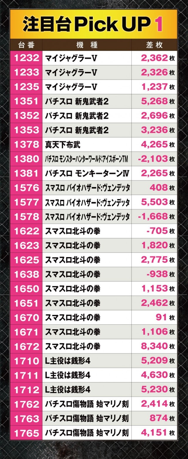 そのほか3台並びの好調台が9箇所誕生しており、なかでも『L主役は銭形4』は平均+5,023枚と凄まじい結果となっていた!