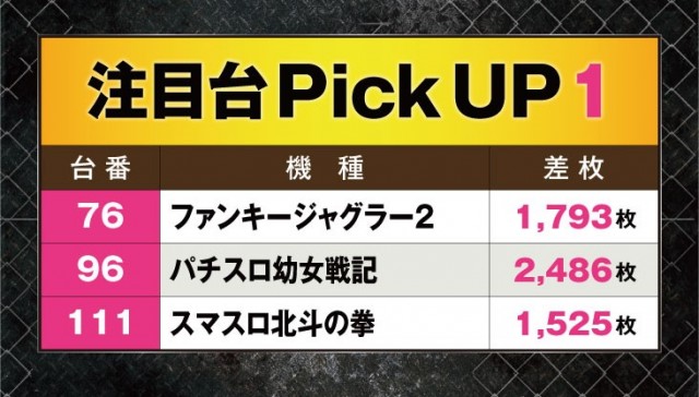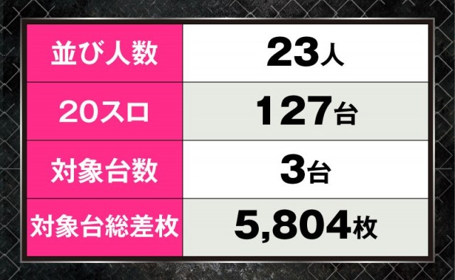対象台数は少ないものの全台が1,000枚オーバーを達成!Aタイプ・6.5号機・スマスロそれぞれから好調台が誕生しており、誰にでもチャンスを掴める内容となっていた。