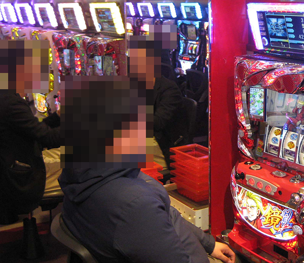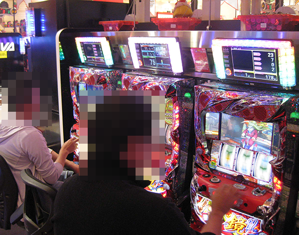 「HEY!鏡」にて、理想的ともいえる展開で遊技をおこなっているプレイヤーを確認。充実した時間を過ごせていることをあらわしているかのように、表情がイキイキとしていた。