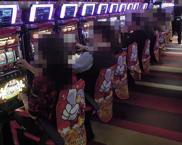 パチスロコーナーをみていくと、ジャグラーシリーズがにぎわっていた。