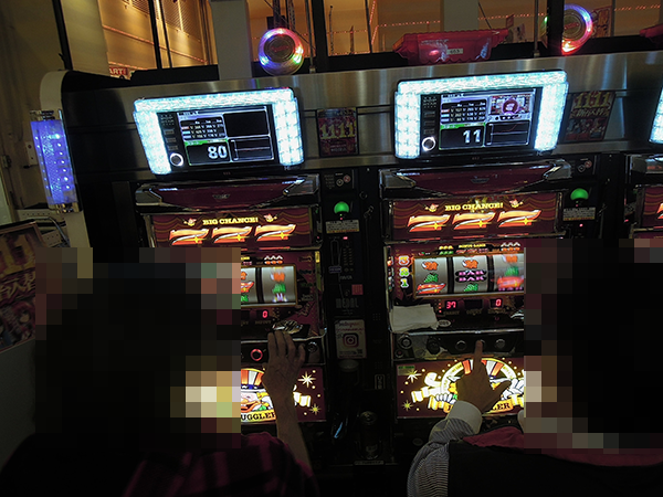 座っていた誰もがイキイキとレバーを叩いていたことが印象的。稼働していたのは8台のうち4台と空き台はあったが、全員が明るい表情をみせていたことで「アイムジャグラーEX-AE」は稼働率以上に活気づいていた。