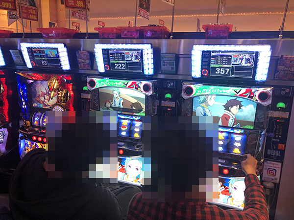 店内のさまざまな場所で活況となっている機種を確認。ステキなシーンに何度も遭遇したが、もっとも印象に残っているのは、やはり「パチスロ交響詩篇エウレカセブン3 HI-EVOLUTION ZERO」の大きな盛り上がりであった。